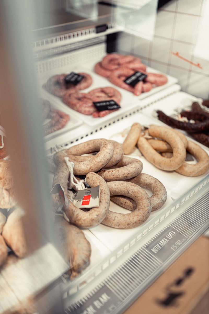 Carn, greix de porc i cotnes, sal, tripa natural, pebre blanc i extracte d'espècies.