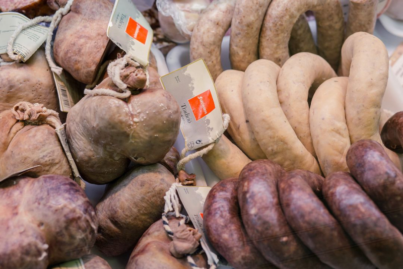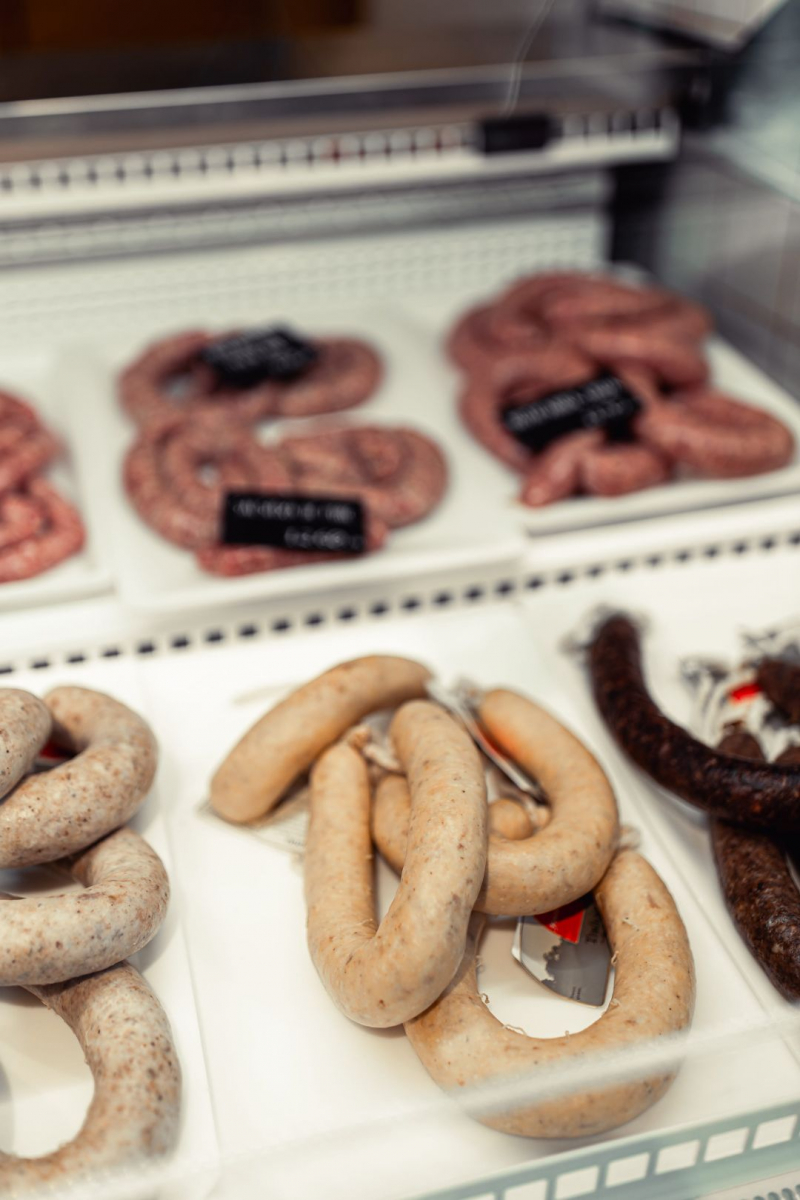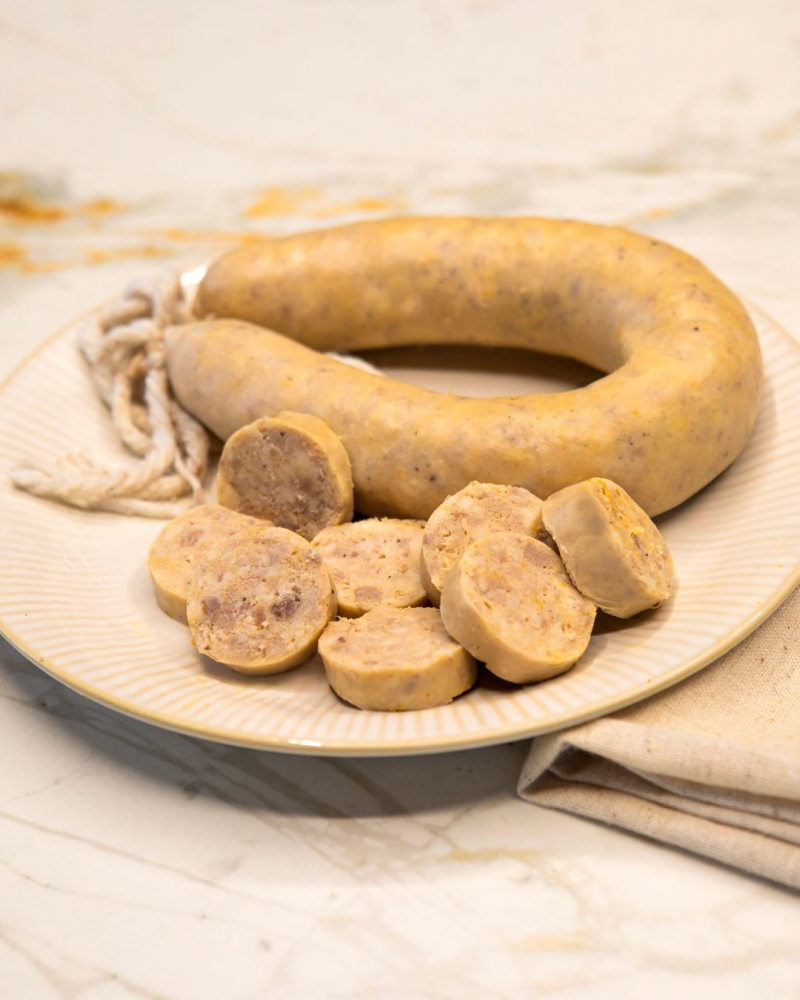 Carn i greix de porc (74,2%) i OU pasteuritzat (24,4%) [OU de gallina, conservadors (sorbat potàssic i benzoat sòdic) antioxidant (ascorbat sódic) i corrector de l'acidesa (àcid cítric)], sal, tripa natural de porc, pebre blanc i extracte d’espècies.
