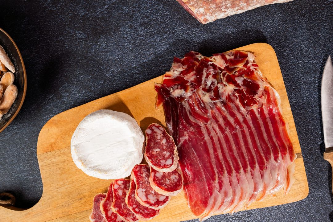 Espatlla de porc ibèric d'enceball (50% raça ibèrica), sal marina, conservador (nitrat de potàssi) i antioxidant (ascrobat de sòdi).