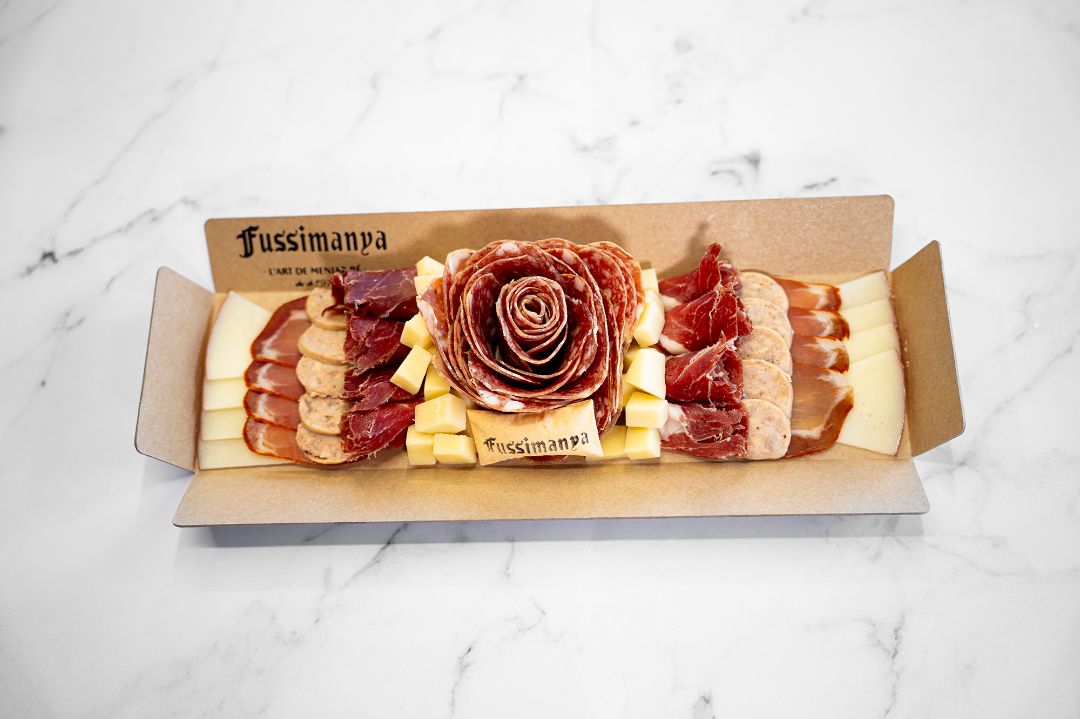 El Pack especial Sant Jordi és una selecció pensada per gaudir d’un àpat especial en parella o en bona companyia. Inclou una safata de selecció d’embotits, dos entrecots llom baix sense os, i la tradicional coca del Mossèn de Folgueroles.