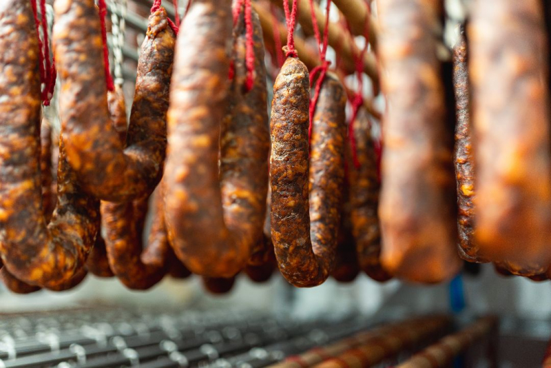 Carn i grassa de porc. Tripa natural, mescla d’espècies (pebre vermell dolç, pebre negre i pebre vermell picant), sal, conservador (nitrat potàssic), antioxidant (extracte de tocoferols i oli vegetal), all, vi (conté SULFITS) i aroma de fum