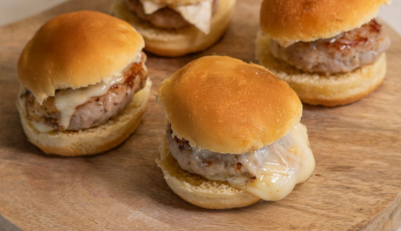 Cuina les mini hamburgueses en una paella amb una mica d’oli, 2–3 minuts per banda.